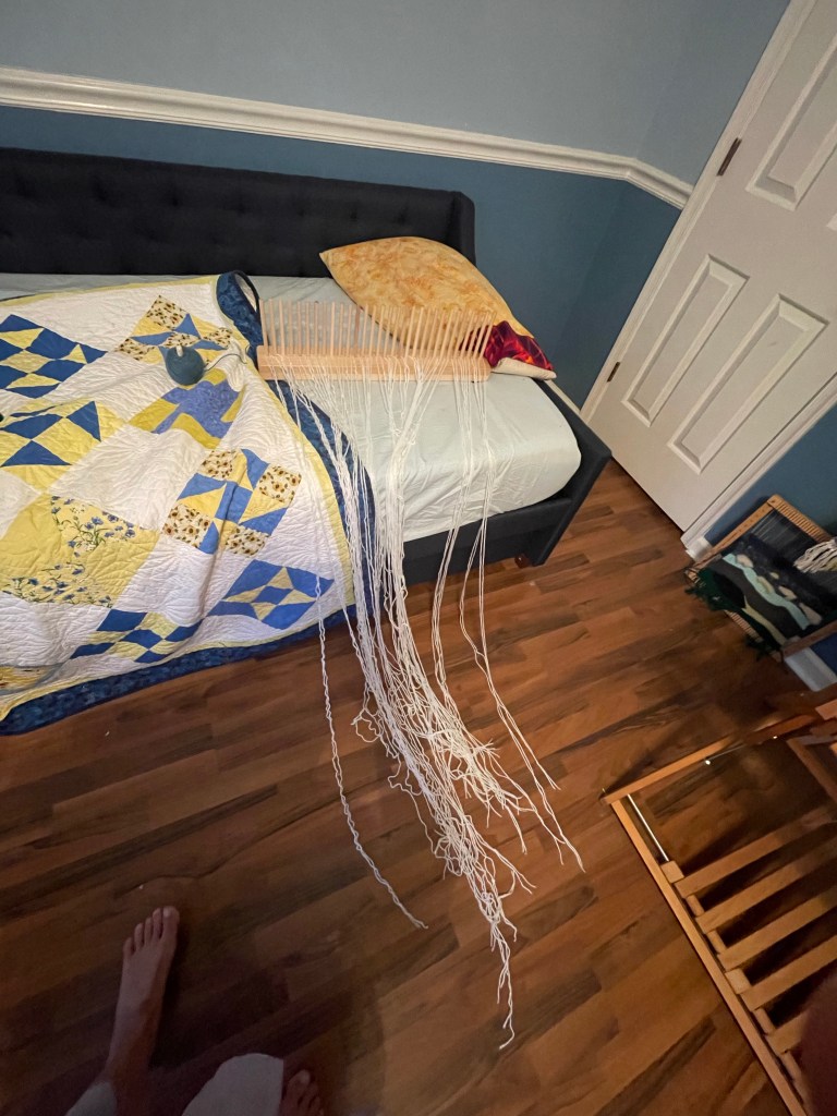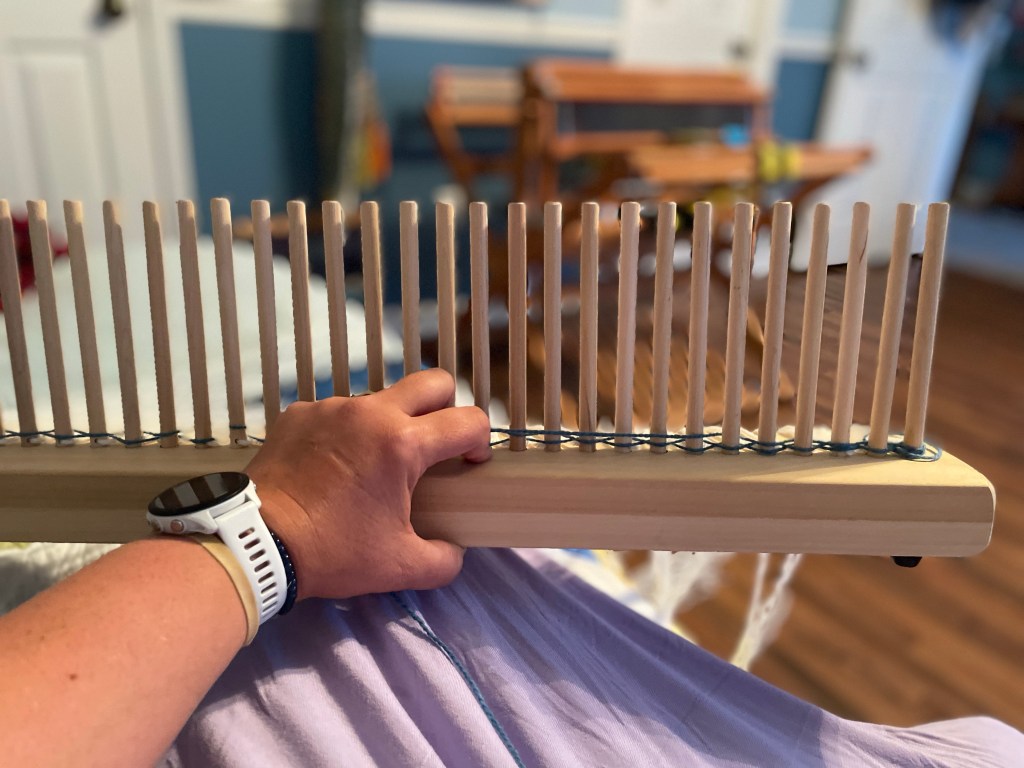 There’s an ancient practice of weaving using a piece of equipment called a peg loom. This can purchased or created if you happen to have a wood worker you know. Fiber artists seem to have handy partners! I’m not that lucky so mine is purchased through The Woolery. I picked the 24 inch version instead of the longer 36 inch version. I wish I had gone for the longer option.