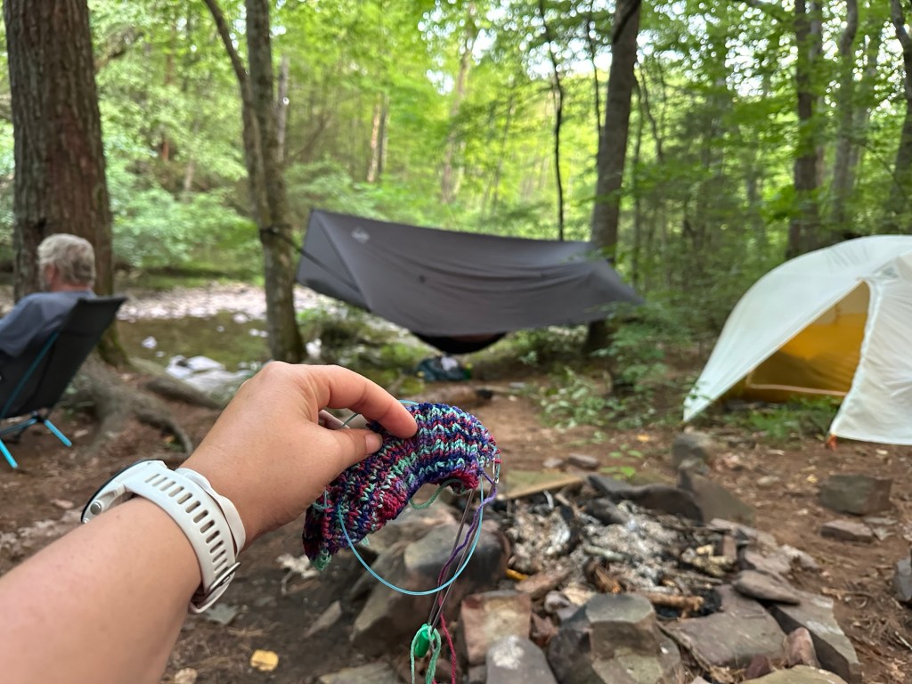 Am I the only person who has to have a travel project? Here I am, with my shawl in progress but the pattern is too intricate to take along. I also have my cross stitch but I’m carrying 32 threads so that’s not great to carry with me. There’s always socks! I started my two at a time toe up socks for my kiddo but I forgot a stitch marker. I used a hair tie to mark the beginning of my round.