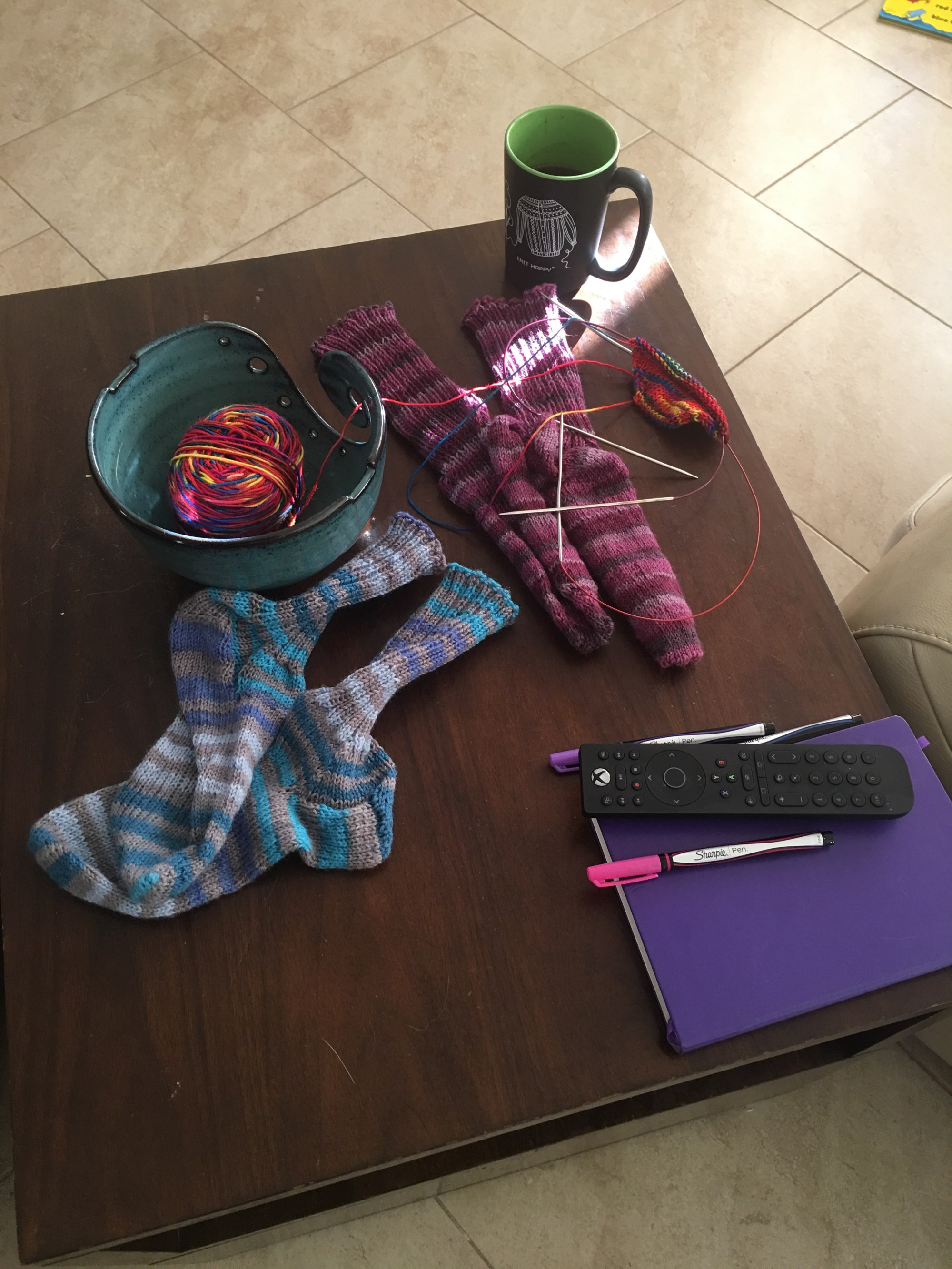 I’m back into knitting socks big time and giving them as presents. I can whip up a pair in a few days (or a trip from Florida to New York.) I don’t make them fancy and I’m back to the point where I don’t need instructions.