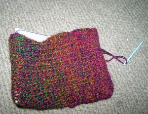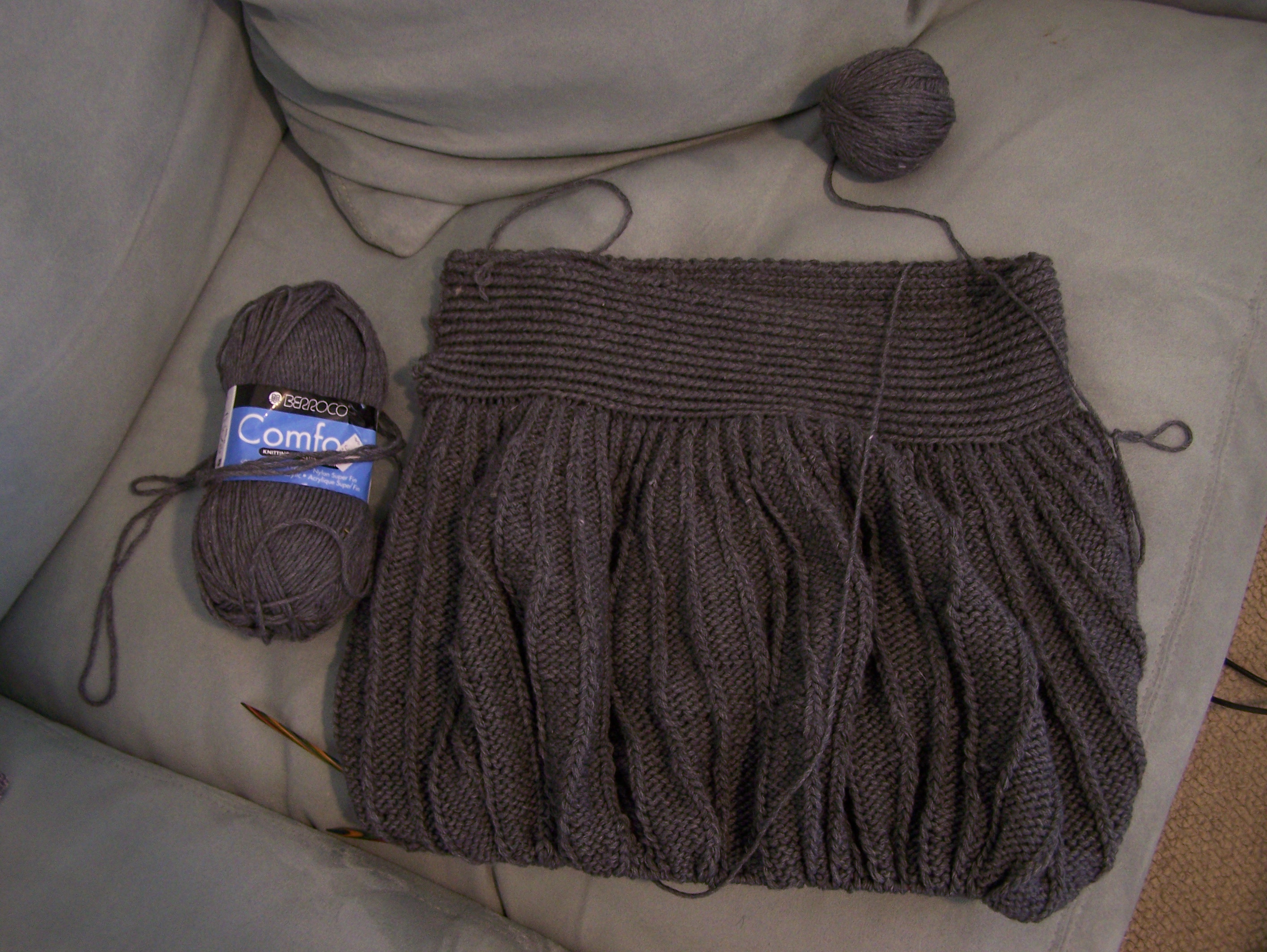 As I worked up the pattern, it wound up being huge, so I made some extra decreases and then made extra increases around the bust. Wearing it, I can tell. I shouldn’t have decreased so much and the bust is tight. My sleeves are tight too and I’m considering ripping them and making them both wider and longer.